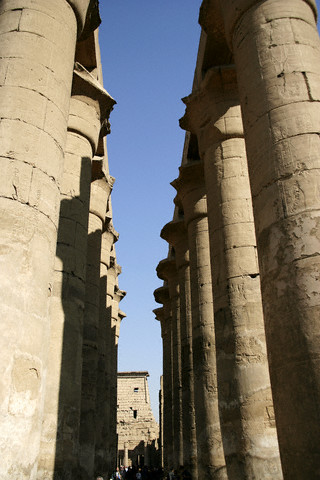 Under Ramses II an additional courtyard at the southern end of the Temple of Luxor was built during the 19th Dynasty. This great court is surrounded by papyrus bud capital columns. Within this court stands the minaret of the mosque of Abu’l Haggag, a Sufi Sheikh.